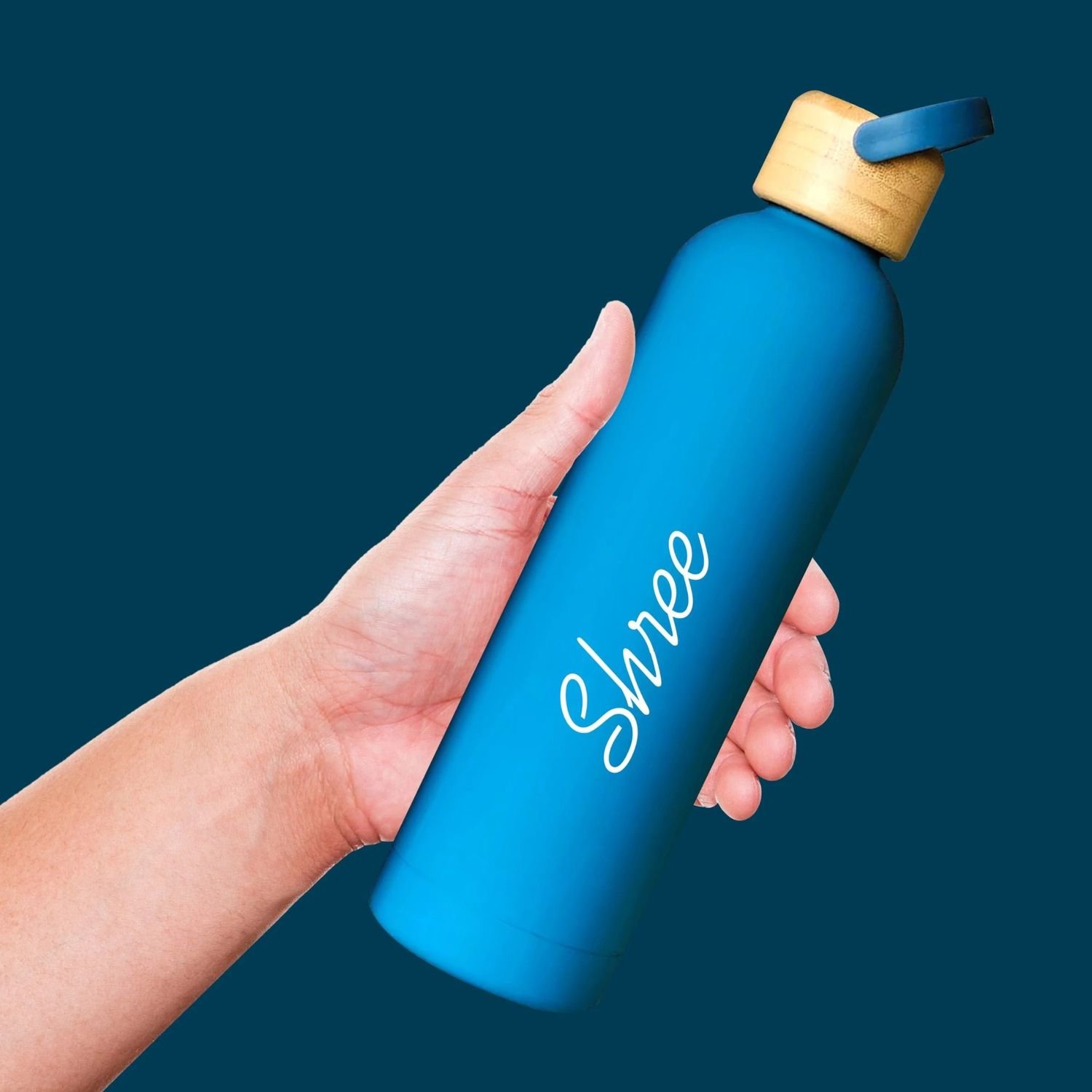 - Stay hydrated in style with this premium vacuum-insulated stainless steel water bottle. Featuring a sleek wooden lid and customizable name engraving, it keeps your beverages hot or cold for hours.